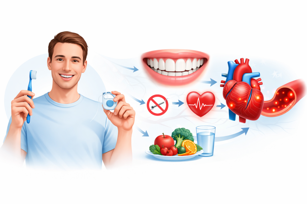Keeping your gums healthy with regular dental checkups and good oral hygiene helps lower this inflammation, protecting both your heart and your smile.